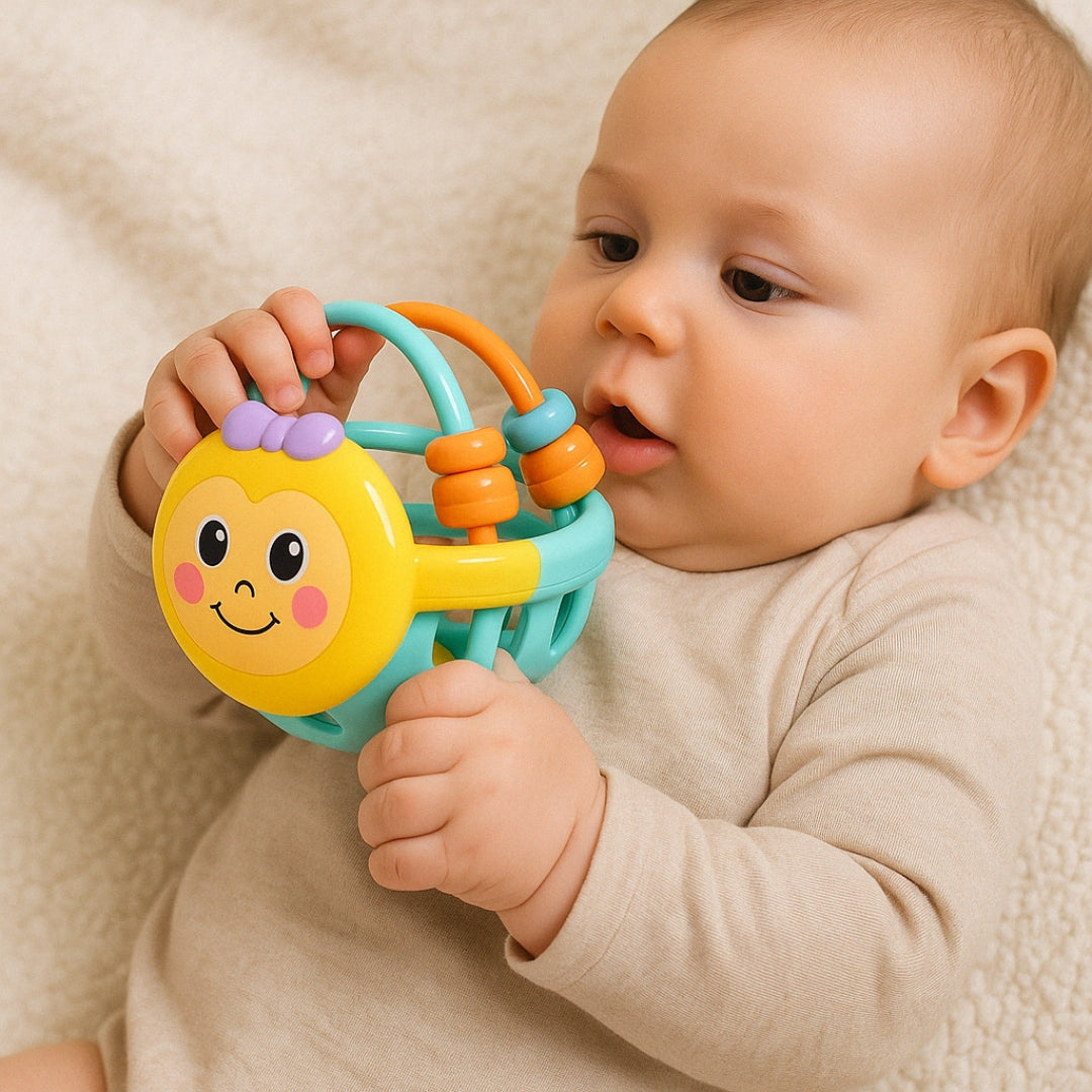 Faites briller les yeux de votre tout-petit avec ce hochet boule musical aux couleurs vives et aux formes amusantes. Conçu pour éveiller les sens dès les premiers mois, ce jouet interactif stimule la curiosité naturelle de bébé tout en développant sa coordination main-œil.